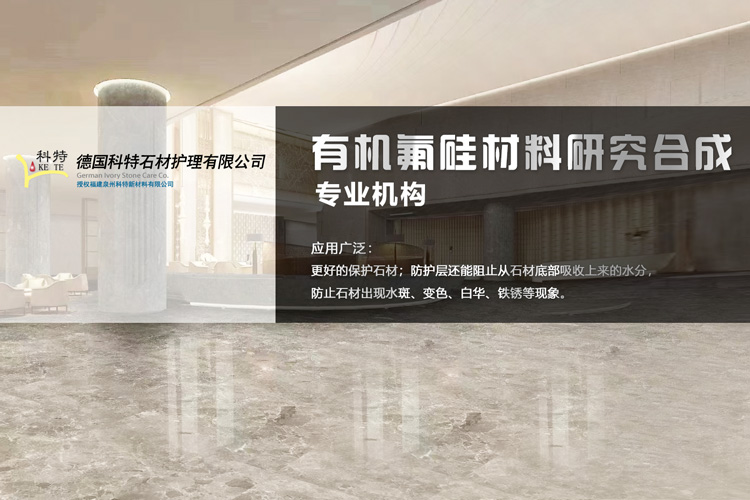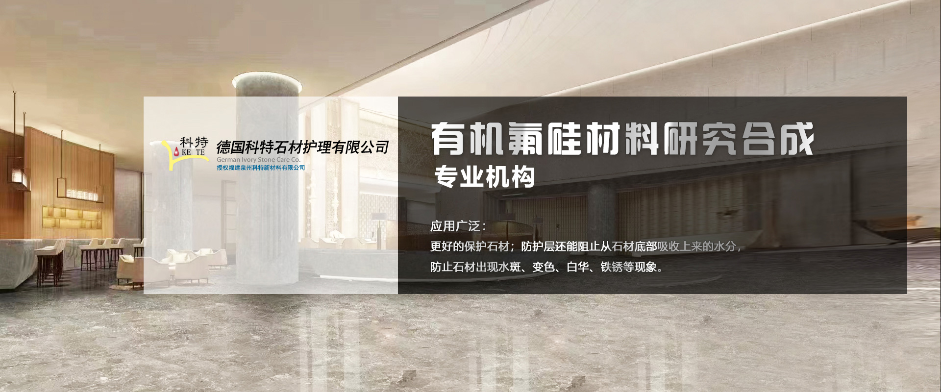 福建泉州科特新材料有限公司(Germany Kurt Ke Te)是德國從事有機(jī)氟硅材料研究合成的專業(yè)機(jī)構(gòu)。對于一些吸水性基材(石材、磚瓦、混凝土),它讓氟硅元素的有效成分滲透到基材的空隙(毛細(xì)管)中,在基材內(nèi)部形成一個防護(hù)層,表面達(dá)到防油效果,同時保持石材的透氣性,從而更好的保護(hù)石材。此外,防護(hù)層還能阻止從石材底部吸收上來的水分,防止石材出現(xiàn)水斑、變色、白華、鐵銹等現(xiàn)象。